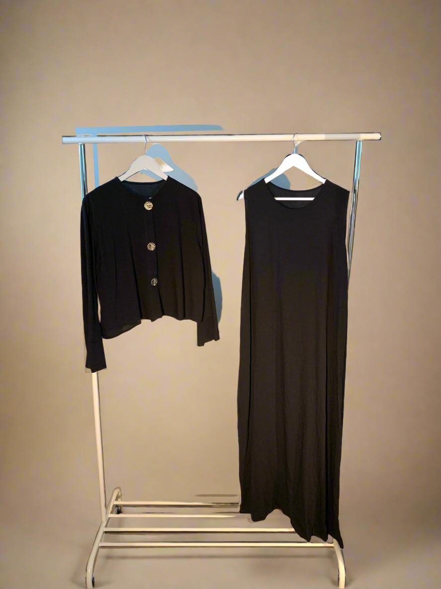 Elegant and modest, this buttoned blouse and dress set offers a graceful layered look with a comfortable fit. It combines timeless style with full coverage and comfort—perfect for both casual wear and everyday.