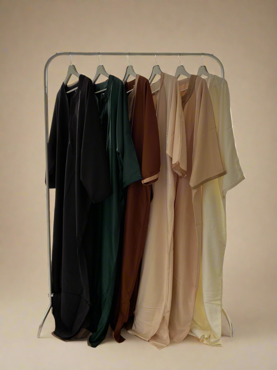 Elegant and timeless, this Moroccan thobe in brown features traditional embroidery and a comfortable, flowing fit — perfect for special occasions or everyday sophistication.