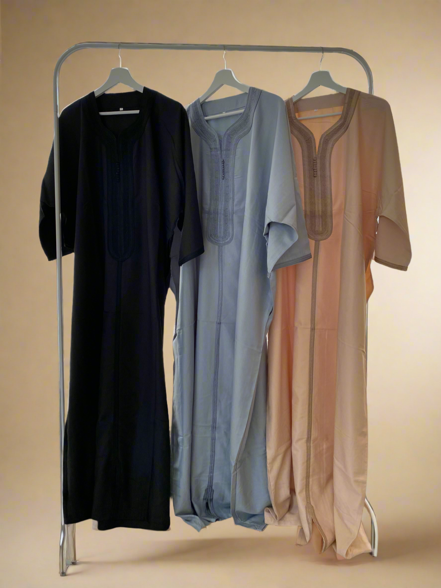 Elegant and timeless, this Moroccan thobe with a long elegant sfif and black features, traditional embroidery and a comfortable, flowing fit — perfect for special occasions or everyday sophistication.