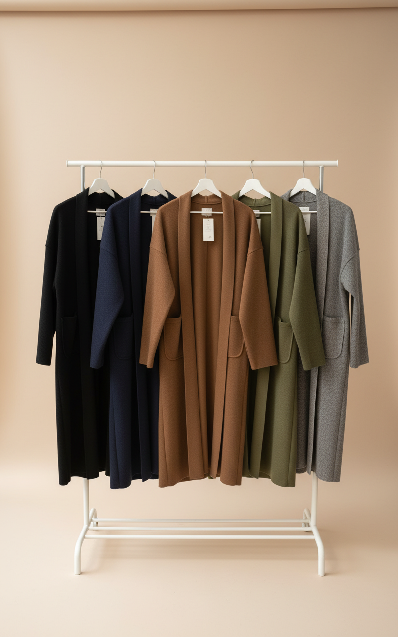 A fluffy grey winter coat, modest in style, offering cozy warmth and timeless comfort.