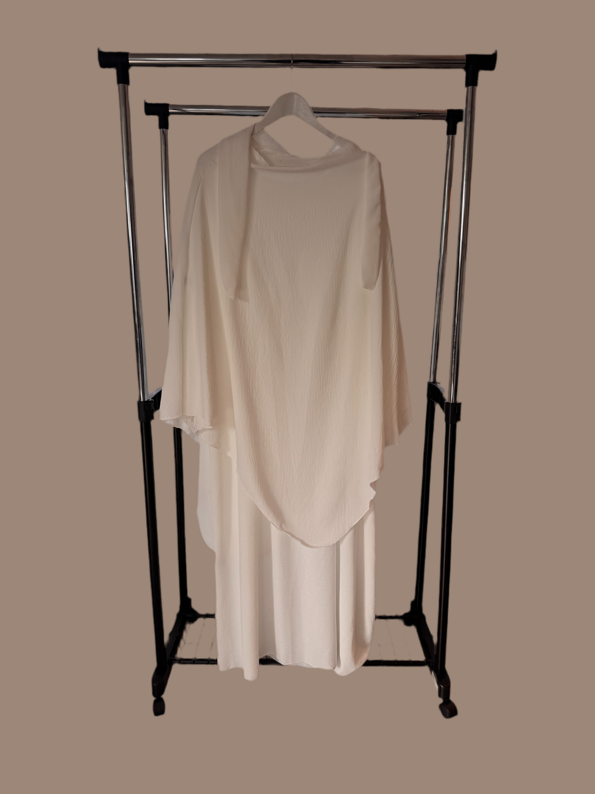 Crafted from lightweight, breathable fabric, it offers full coverage with a smooth, graceful drape. The neutral beige tone brings a touch of warmth and saphistication, making it perfect for everyday wear, prayer, or layering over.